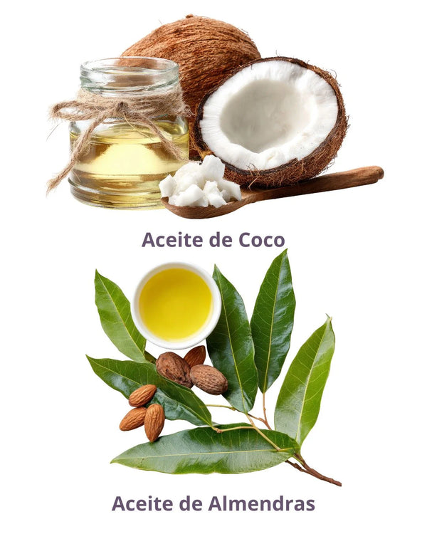 Aceite de coco + aceite de almendras: permite una aplicación suave y constante durante la noche. Flores de lavanda: Calma y la relajación. Aceite de Jazmín: Sensación de bienestar y tranquilidad emocional. Extracto de Chamomilla: relajar y preparar el cuerpo para el descanso.